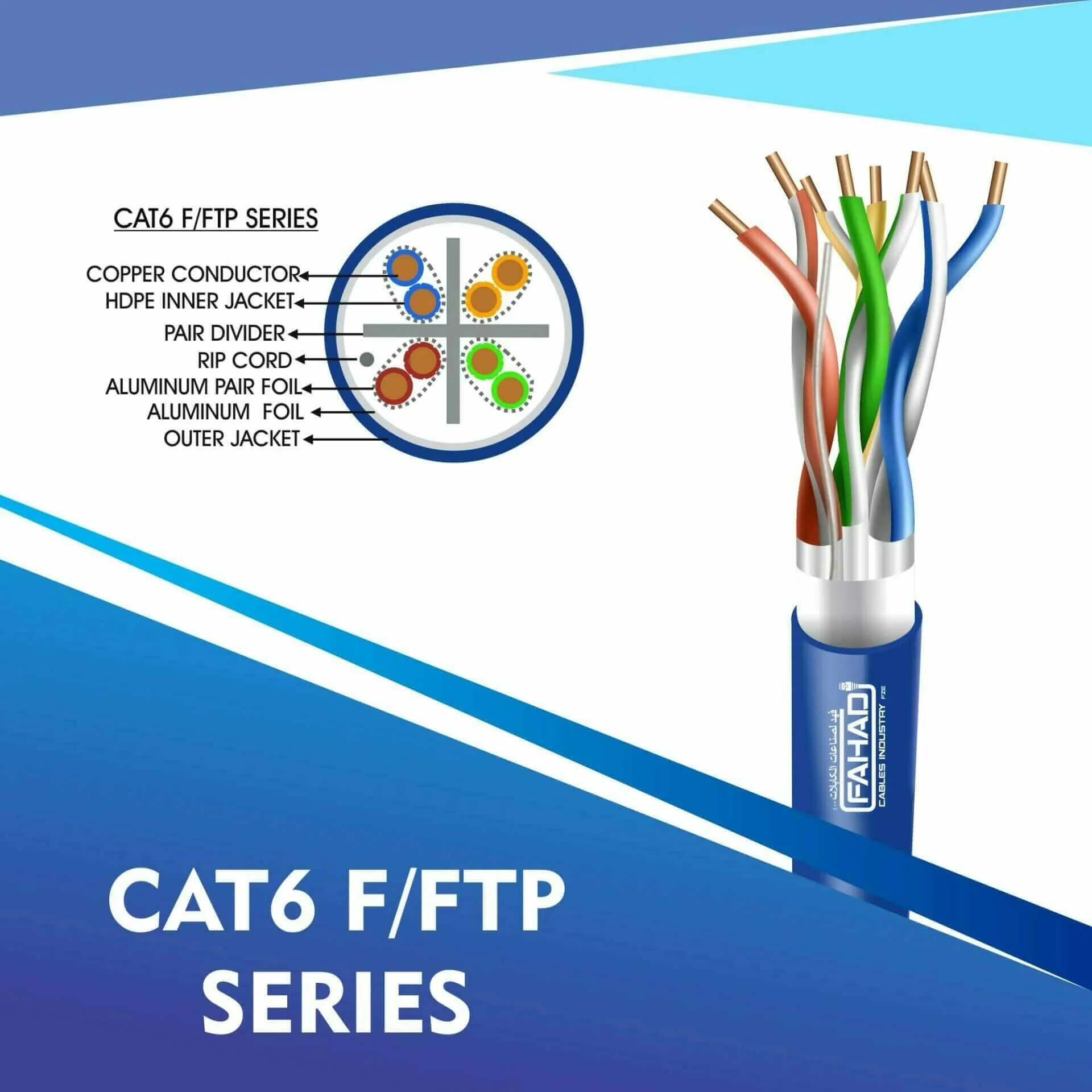Fahad Cables Industries FZE is one of the most Reputable Manufacturers of Network cables in the Middle East. Providing a Happier, Richer Future through Providing Solutions for copper range cat3,cat5e,cat6,cat6a,cat7 and cat8 networking cables Coaxial Cables Automation Cables Industrial and Building Automation Cables data patch cords fiber patch cord pigtails.