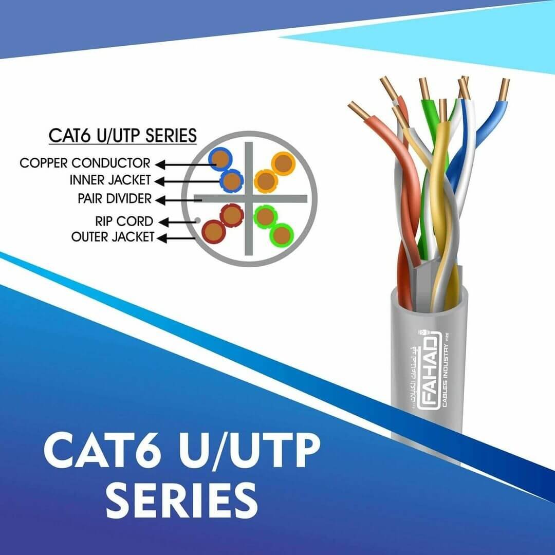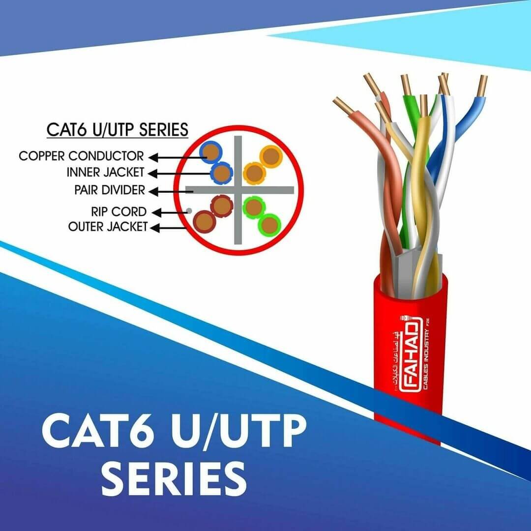 FAHAD CABLES cat6 utp lan cable 4 twisted pairs 23 awg 305m are Manufactured Tested and Complied with ANSI/TIA/568.2-D CENELEC EN 50288-5IEC 61156-5 (ISO/IEC-11801 Class -Ea). Cat6a Series is Designed to Ensure the Highest levels of performance, reliability, and longevity, and are ideal for large enterprise and small business.cat6 23 awg 4 twisted pair u/utp network cable 305-500m