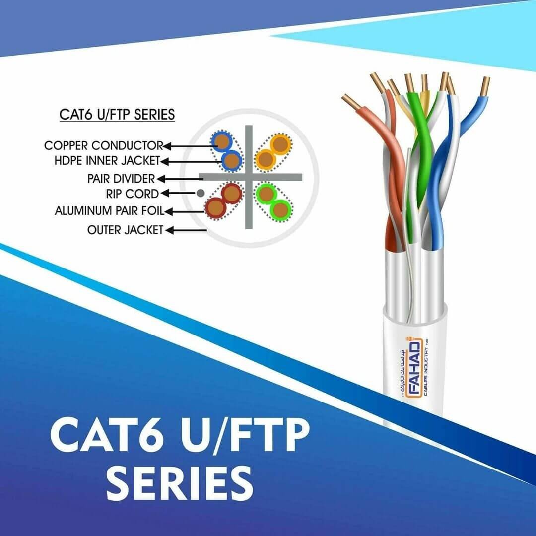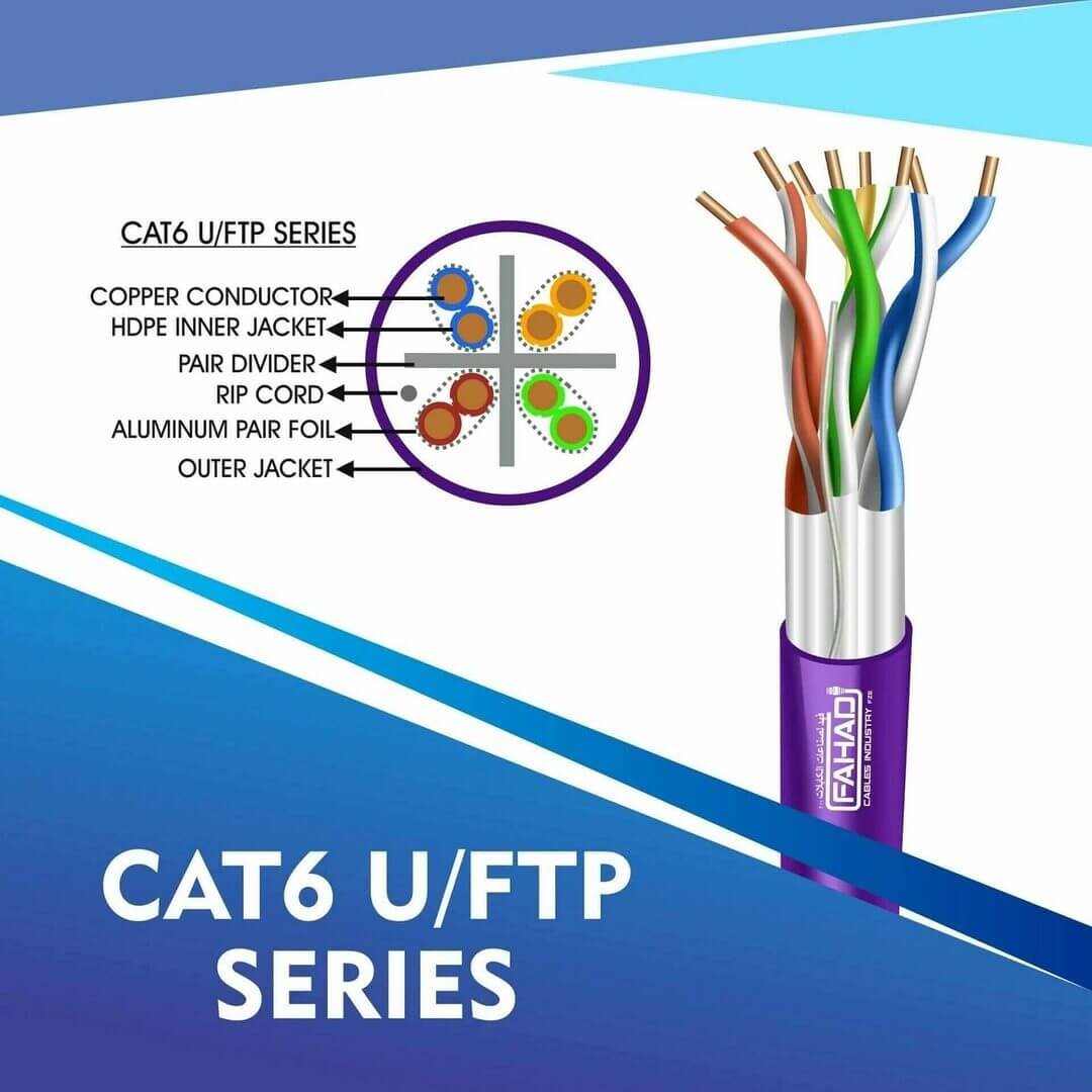 FAHAD CABLES utp network cable are Manufactured Tested and Complied with ANSI/TIA/568.2-D CENELEC EN 50288-5IEC 61156-5 (ISO/IEC-11801 Class -Ea). Cat6a Series is Designed to Ensure the Highest levels of performance, reliability, and longevity, and are ideal for large enterprise and small business.cat6 23 awg Outdoor 4 twisted pair u/ftp network cable 305-500m
