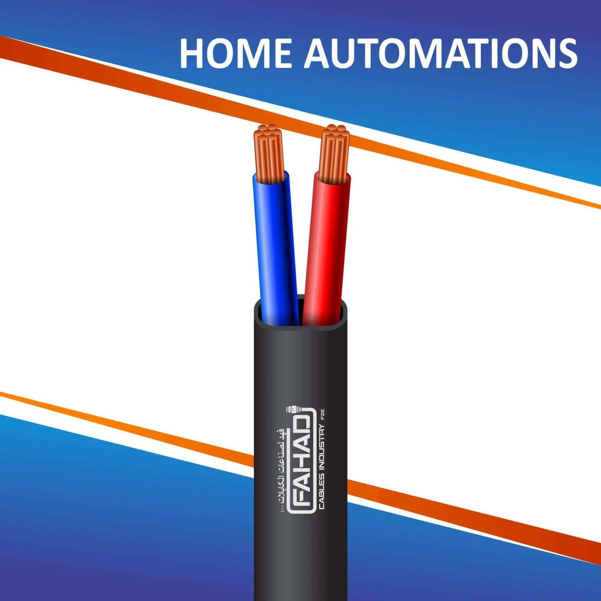 FAHAD CABLES Provides High Quality flat cable 2 core Home Automations Outdoor 305m for use in Various Industrial And Building Automation Indoor and Outdoor Applications. They Can Be Easily use With Their Flexible Construction in Narrow Application Like CCTV Systems SMATV System Audio Video Intercom Systems Public Address Systems Access Control Systems home automation cable Burglar Alarm Systems Lighting Control Systems Gate Automation Systems Smart Home Automation Building Automation Systems Computer Systems and Many More ELV Systems. The Products Has Unique Properties and Benefits for Different Types of use. FAHAD CABLES Building Automation Cable Products Can Easily Meet Complex Application Requirements and Specifications. Home Automations 2 core Outdoor flat cable 305m